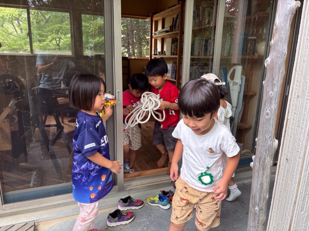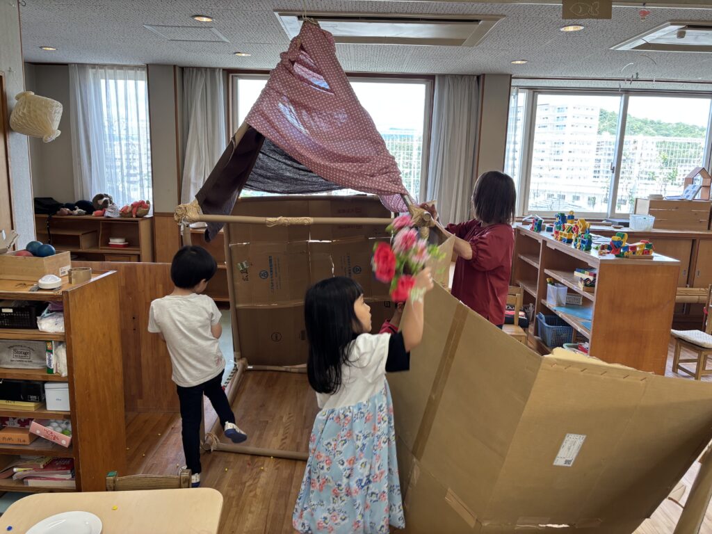 秘密基地のようなお城の中では、おままごとや、かくれんぼをして楽しんでいます。