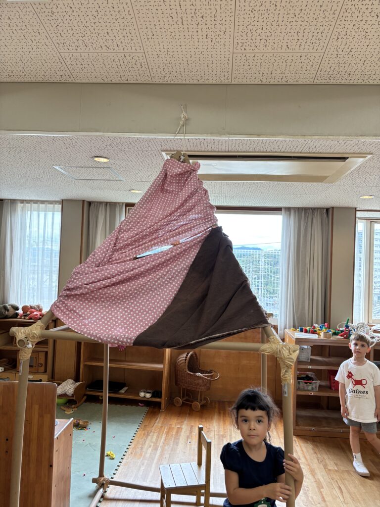そして、お部屋の枠組みが完成し、布を被せて天井もできました。