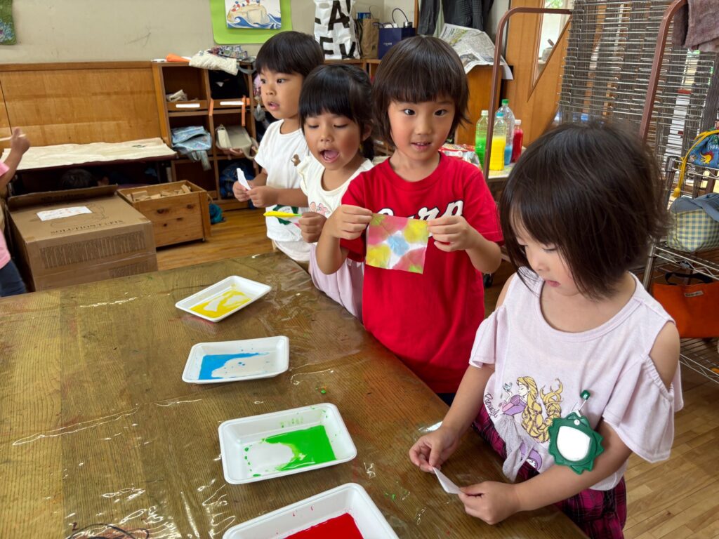 和紙を広げるまで、どんな柄になるのか分からないので、ワクワクしながら広げていた子どもたち。