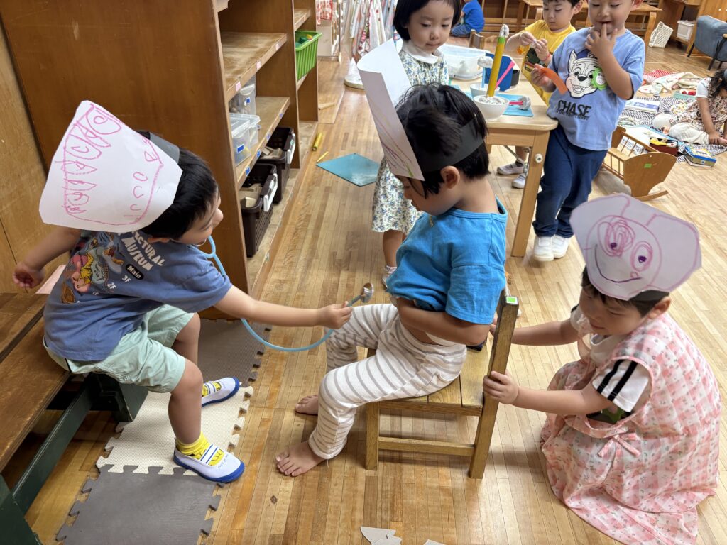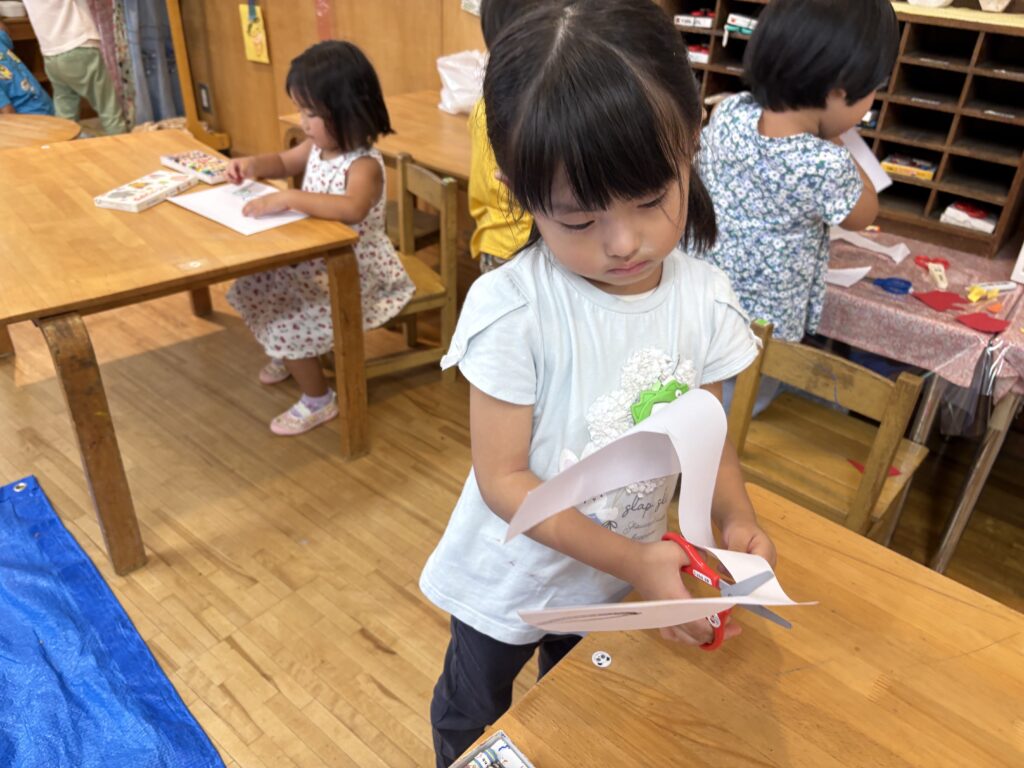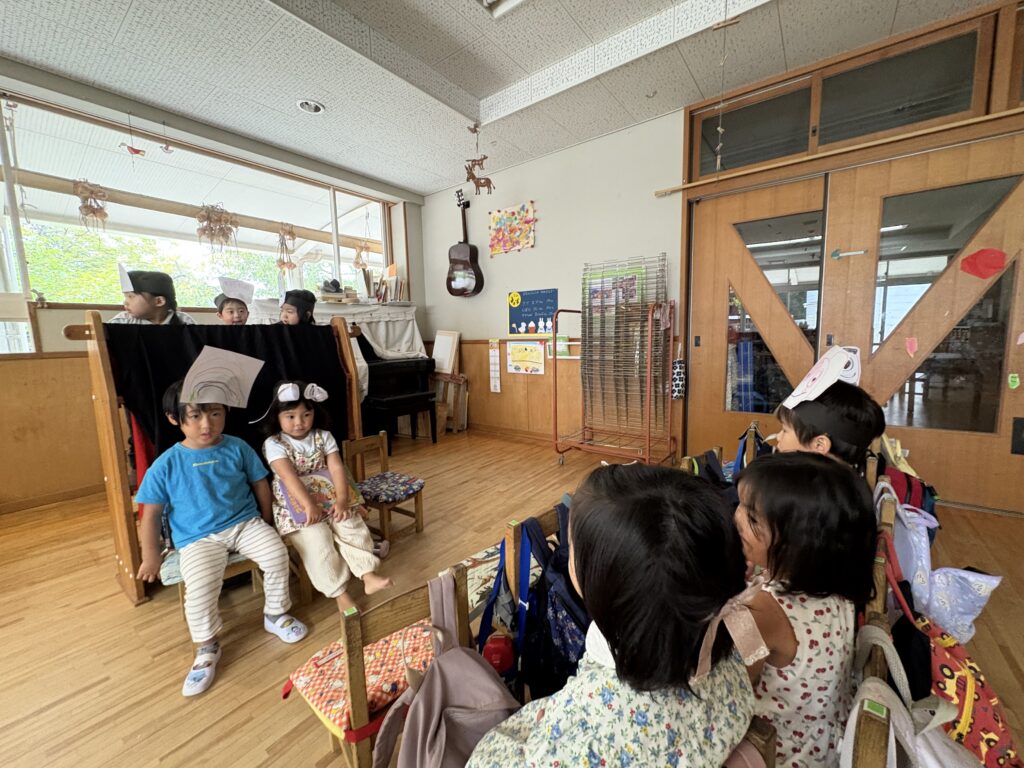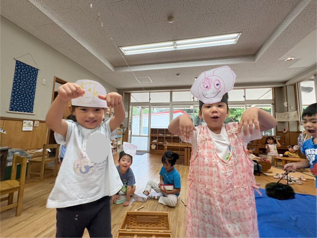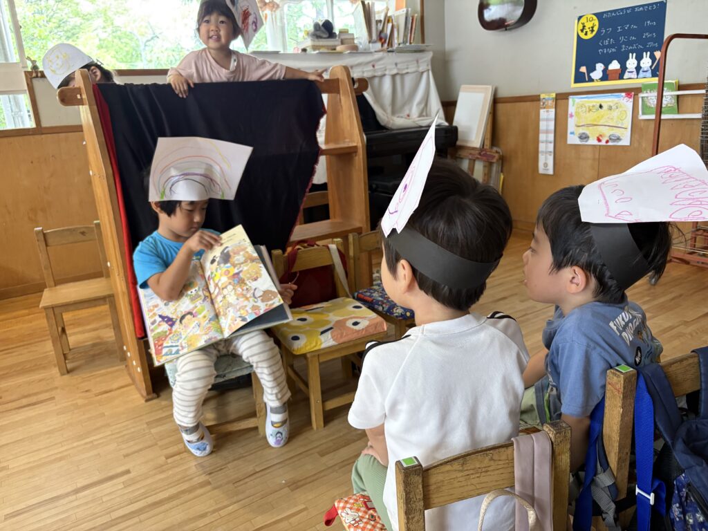 目には見えないちょっぴり怖くてワクワクするおばけの世界を楽しんでいる年少組の子どもたち。