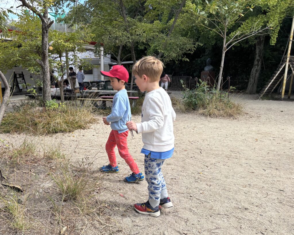 1人の男の子が「寒いから焚き火しようよ!」と提案すると周りの友だちも「したい、したい!」と話が盛り上がり、焚き火の準備をすることになりました。