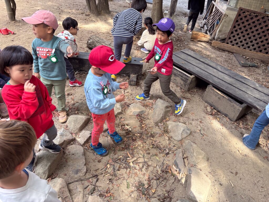 「こんなに集めたよ!」と小枝を見せ合いこしながらどんどん集めていきます。