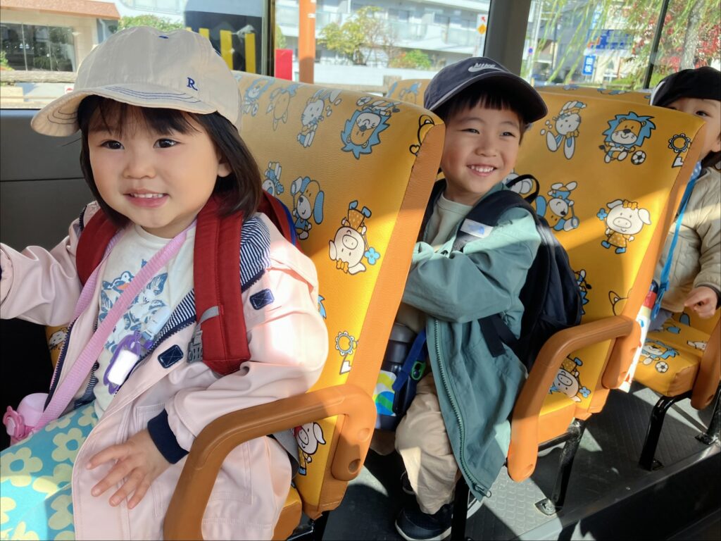 先日、満3歳のすみれ組さんとれんげ組さんは新牛田公園へおでかけに行ってきました。子どもたちにとって初めての遠足、そして幼稚園バスに乗るのも初めての子がたくさん!みんなでこの日をずっと楽しみに待っていました。