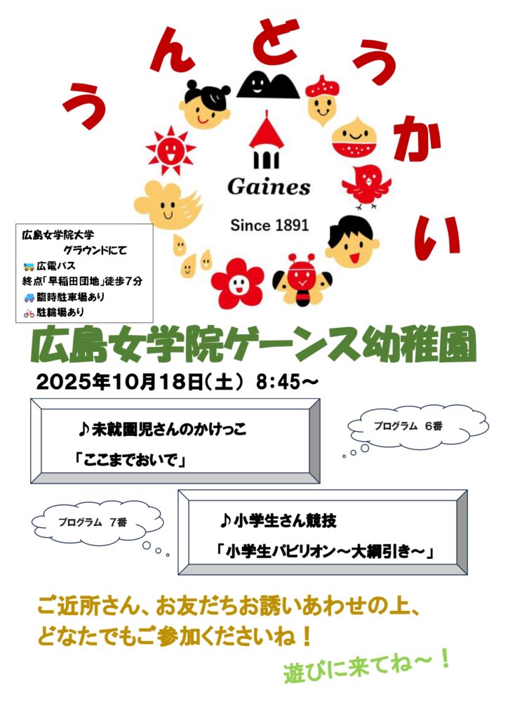 2025.10.18(土)”運動会”のお知らせ | 学校法人広島女学院 広島女学院ゲーンス幼稚園